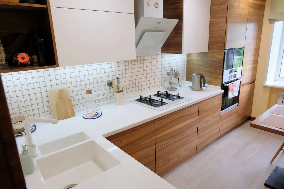 Дизайн угловой кухни с приятным вкусом, 66 миниатюр