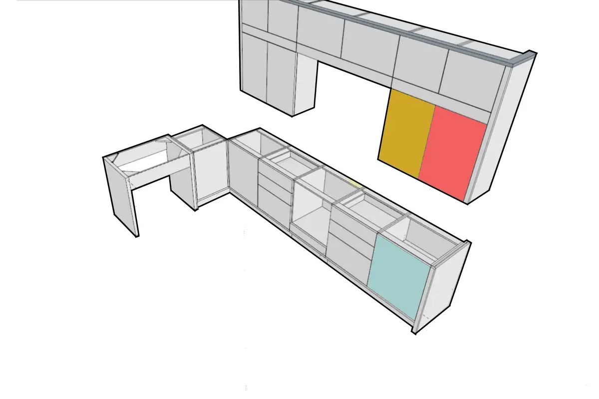 Я покажу моделирование в SketchUp кастомной конструкции шкафов классического кухонного гарнитура. Кастомность – необычный цоколь, необычные модули для упора лестницы между навесными шкафами и антресолями. Вернуться к плану моделирования классической кухни, скачать модель классической кухни с лестницей.